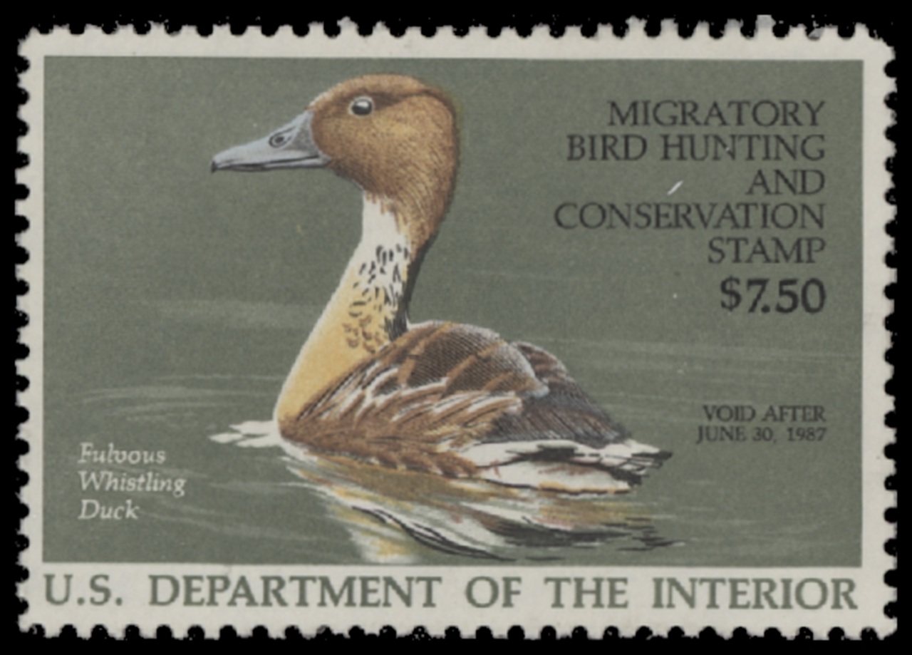 RW53 1986 Federal Duck Stamp. Unsigned, No Gum. Fine - Very Fine. Fulvous Whist. Duck by Burton Moore Jr.