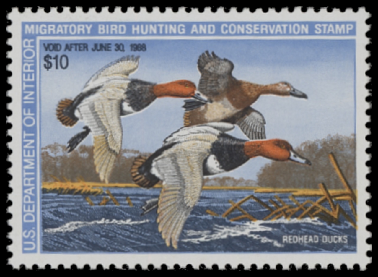 RW54 1987 Federal Duck Stamp. Mint Never Hinged. Fine - Very Fine. Redhead Ducks by Arthur G. Anderson.