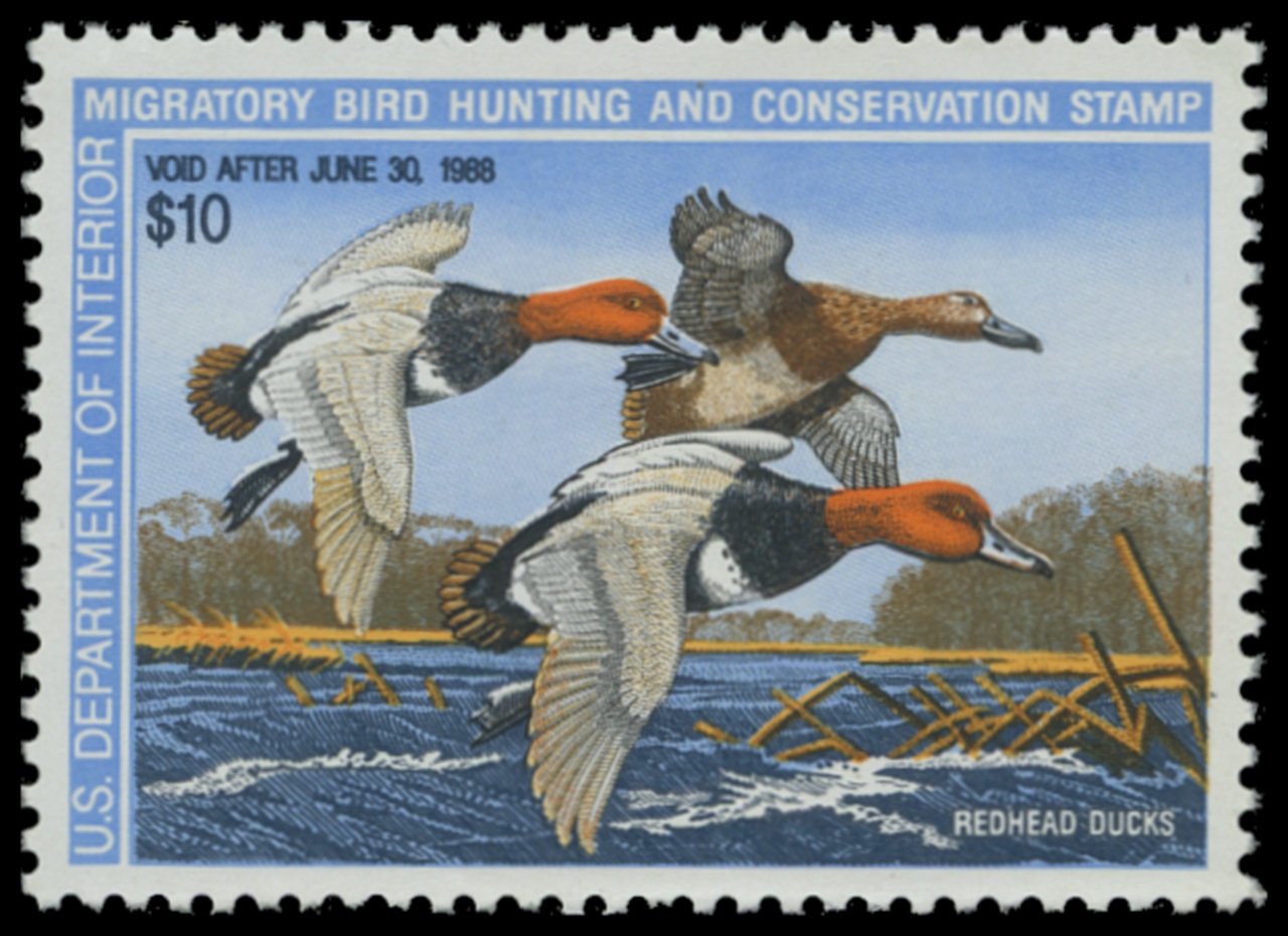 RW54 1987 Federal Duck Stamp. Mint Never Hinged. Very Fine. Redhead Ducks by Arthur G. Anderson.