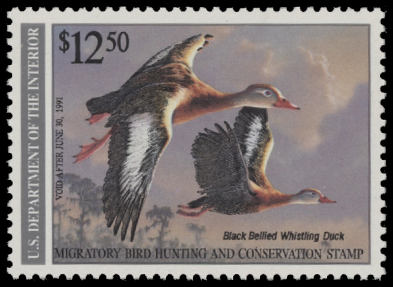 RW57 1990 Federal Duck Stamp. Mint Never Hinged. Fine - Very Fine. Black-bellied Whist. Ducks by Jim Hautman.