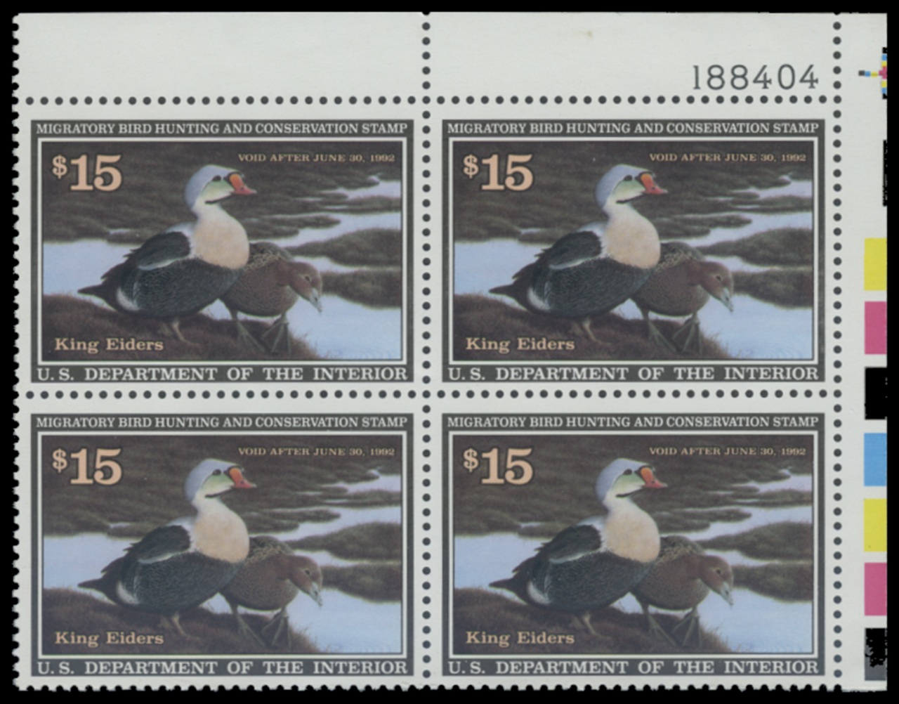 RW58 1991 Federal Duck Stamp. Mint Never Hinged. Fine - Very Fine. King Eiders by Nancy Howe.