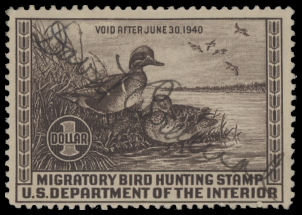 RW6 1939 Federal Duck Stamp. Used. Fine - Very Fine. Green-wing Teal by Lynn Boque Hunt.