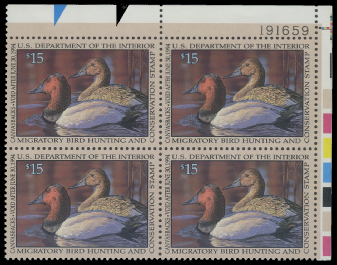 RW60 1993 Federal Duck Stamp. Mint Never Hinged. Fine - Very Fine. Canvasbacks by Bruce Miller.