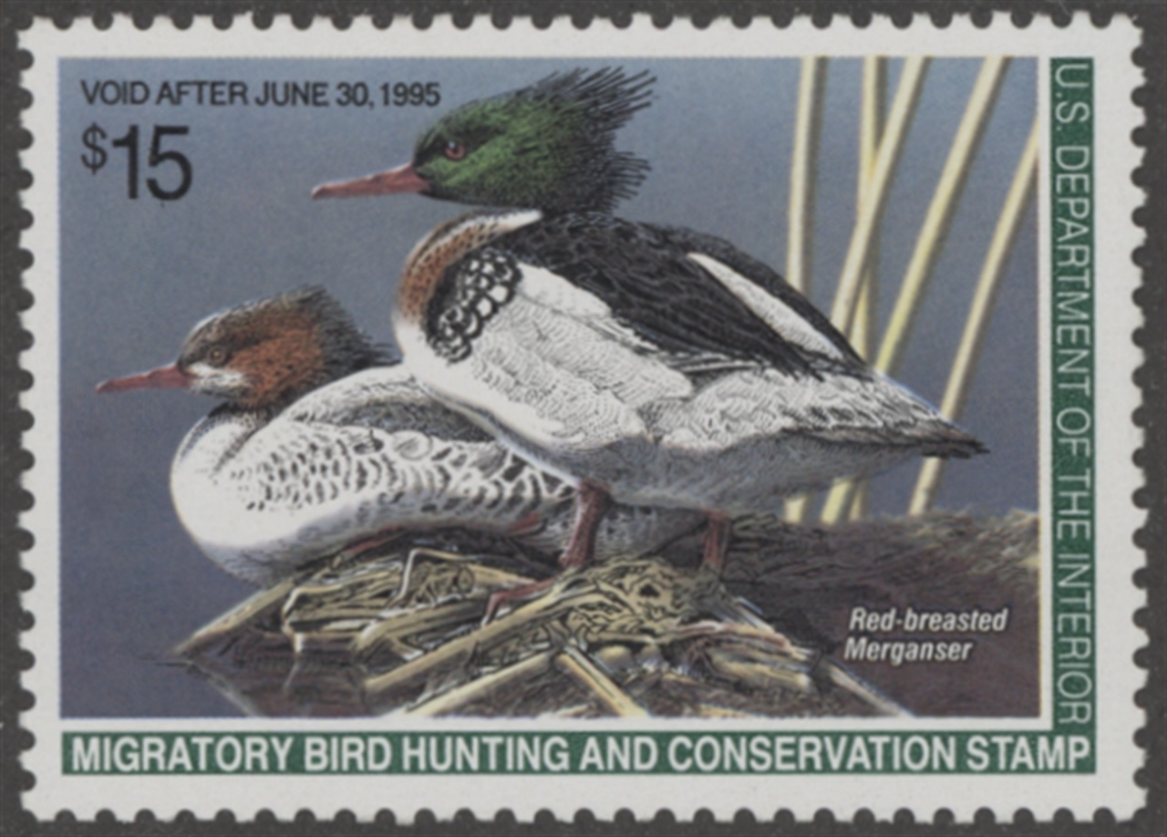 RW61 1994 Federal Duck Stamp. Mint Never Hinged. Very Fine. Red Breasted Mergansers by Neil Anderson.