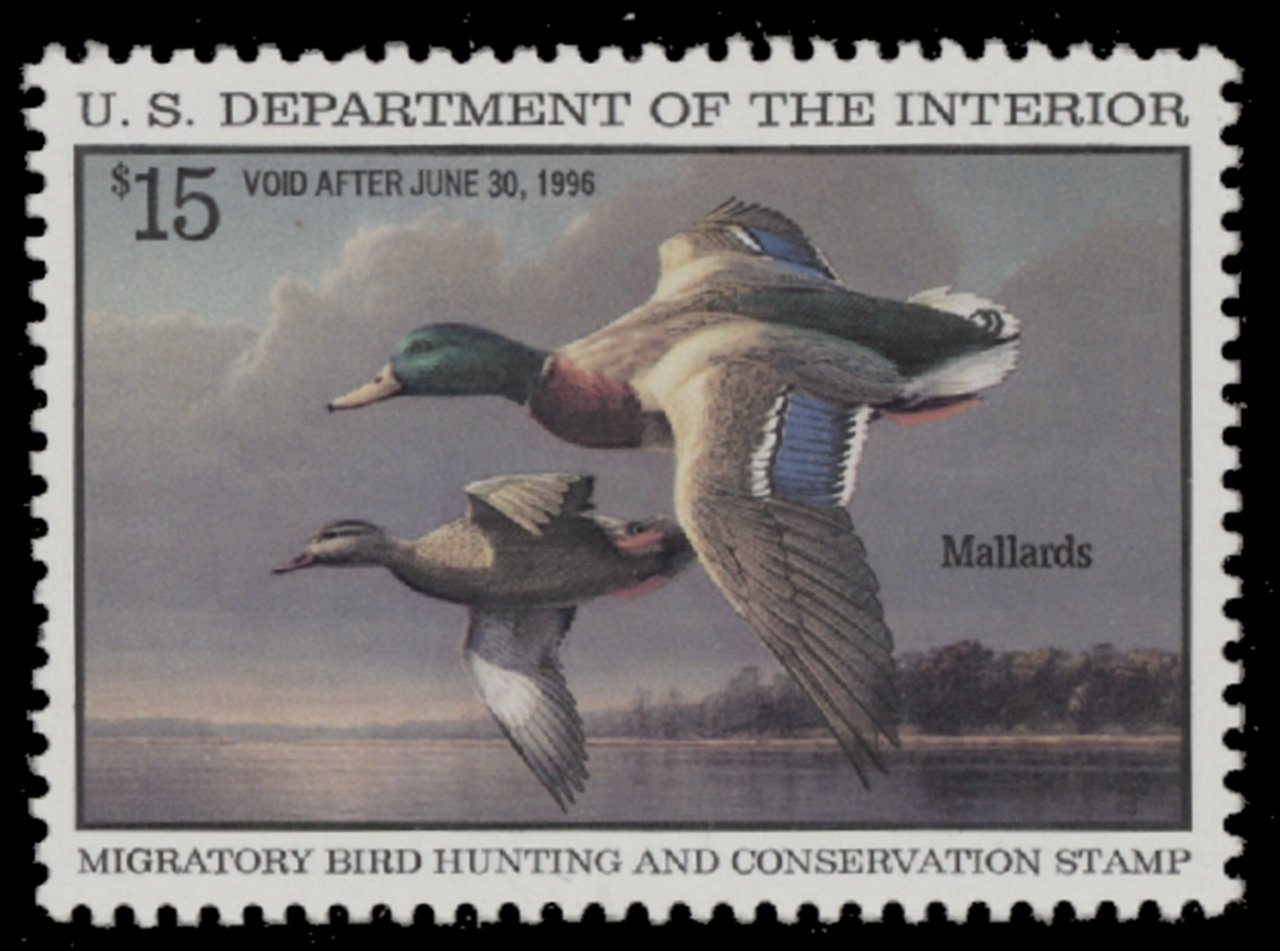 RW62 1995 Federal Duck Stamp. Mint Lightly Hinged. Very Fine. Mallards by Jim Hautman.