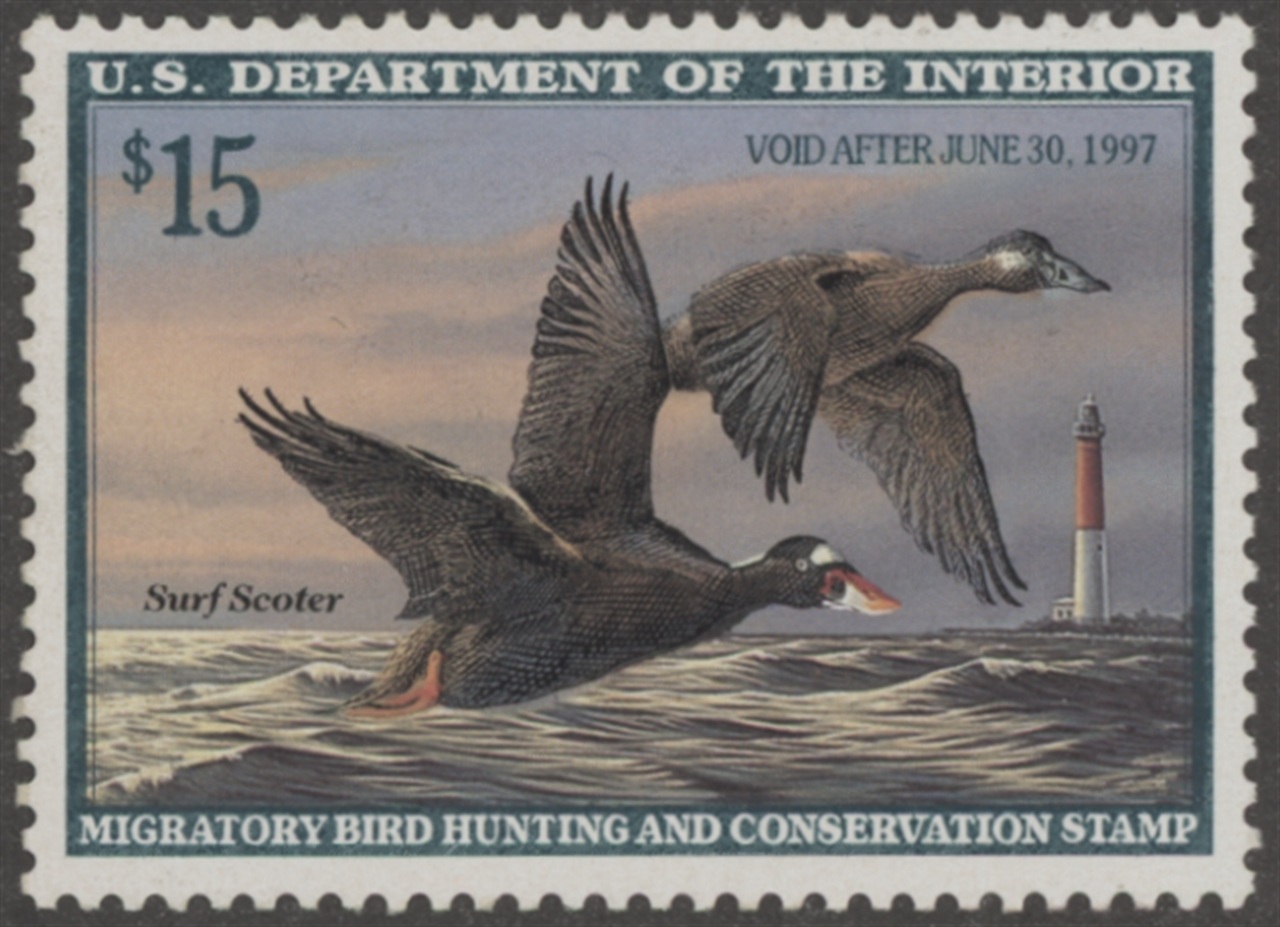 RW63 1996 Federal Duck Stamp. Mint Never Hinged. Very Fine. Surf Scoters by Wilhelm Goebel.