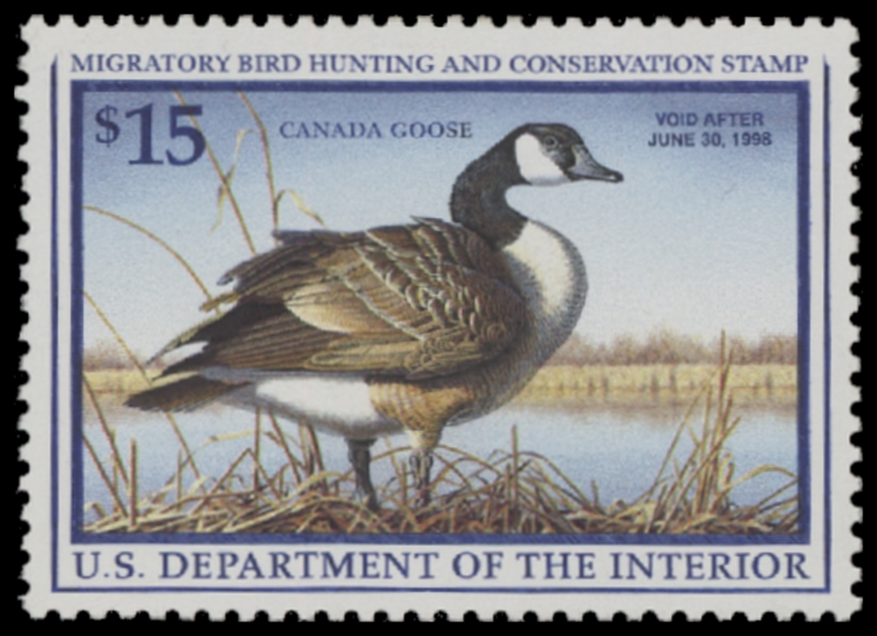 RW64 1997 Federal Duck Stamp. Mint Lightly Hinged. Fine - Very Fine. Canada Goose by Robert Hautman.