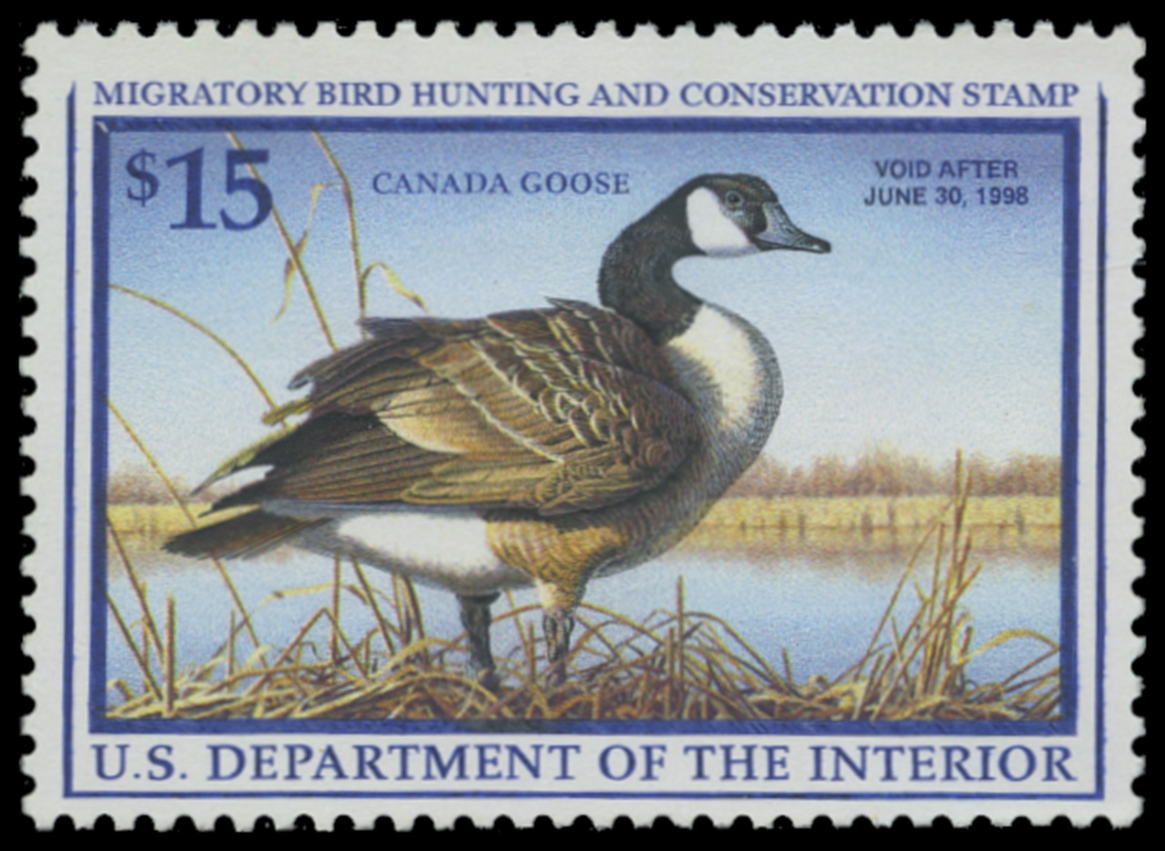 RW64 1997 Federal Duck Stamp. Mint Lightly Hinged. Fine - Very Fine. Canada Goose by Robert Hautman.