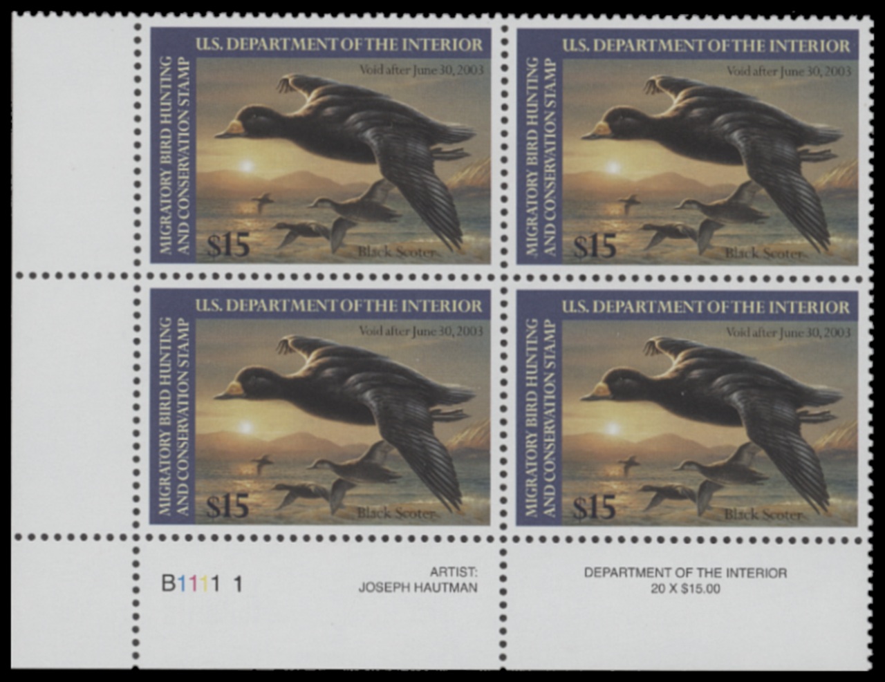 RW69 2002 Federal Duck Stamp. Mint Never Hinged. Fine - Very Fine. Black Scoters by Joe Hautman.