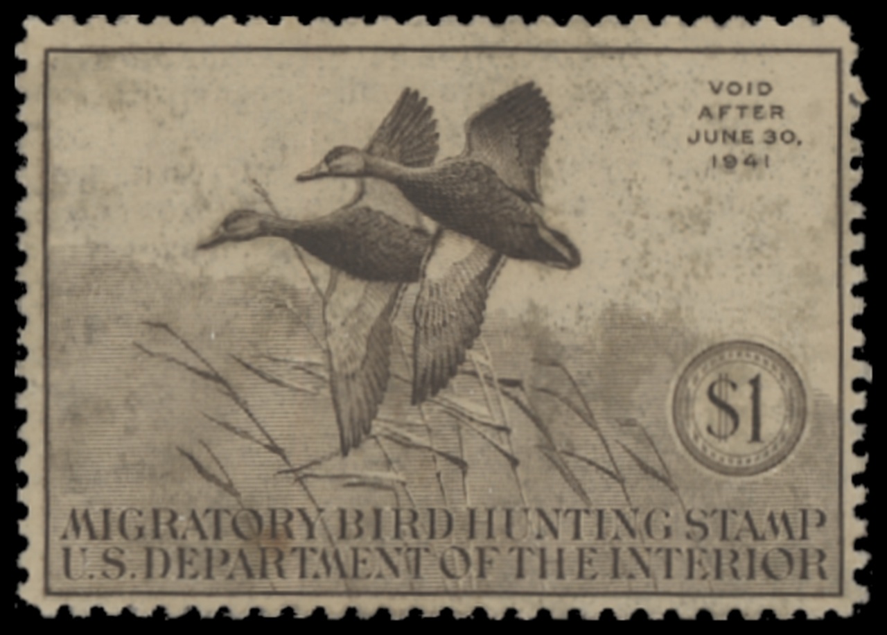 RW7 1940 Federal Duck Stamp. Used. Fine - Very Fine. Black Ducks by Francis L. Jaques.