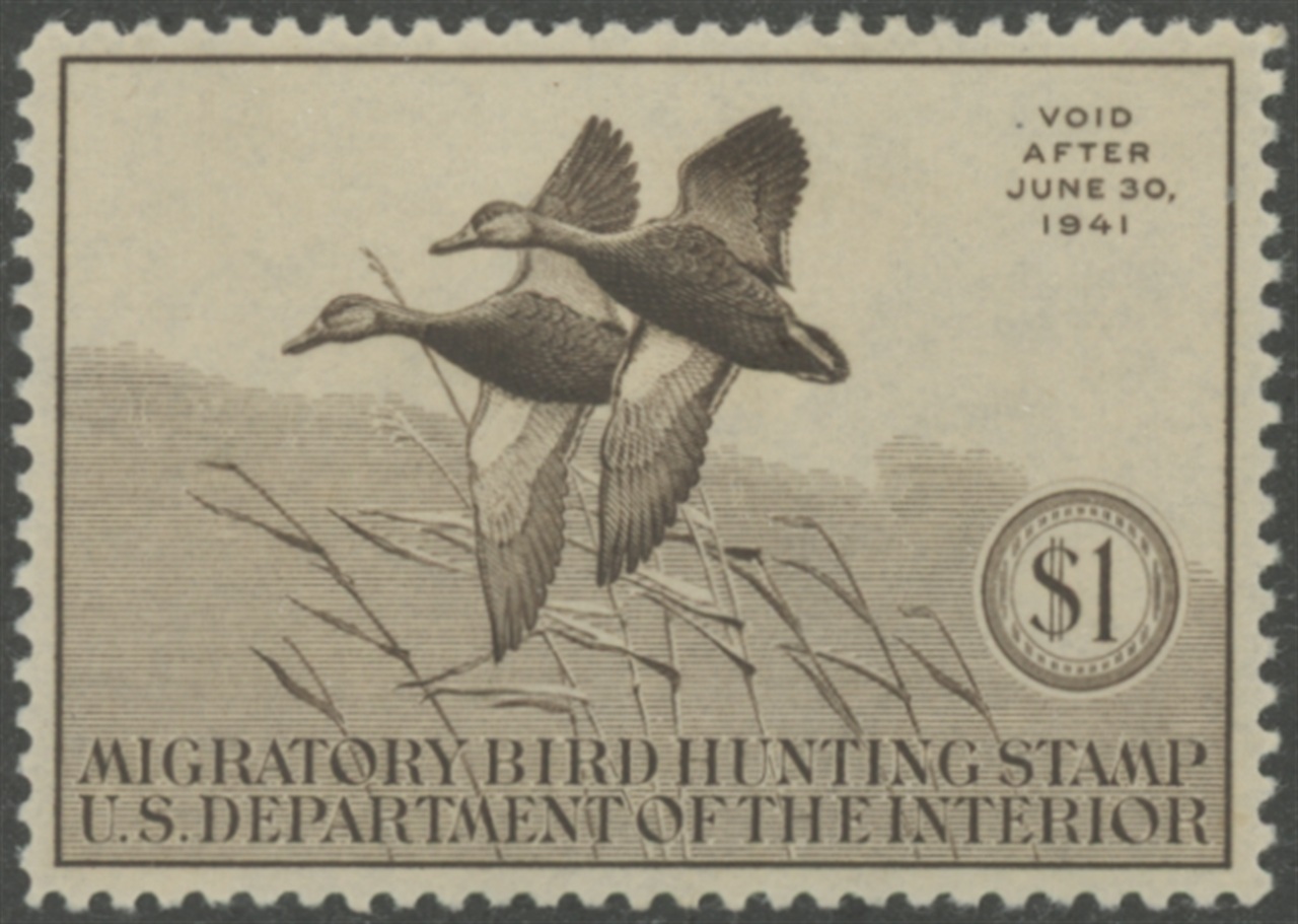 RW7 1940 Federal Duck Stamp. Mint, Hinge Remnants. Extra Fine Centering. Black Ducks by Francis L. Jaques.