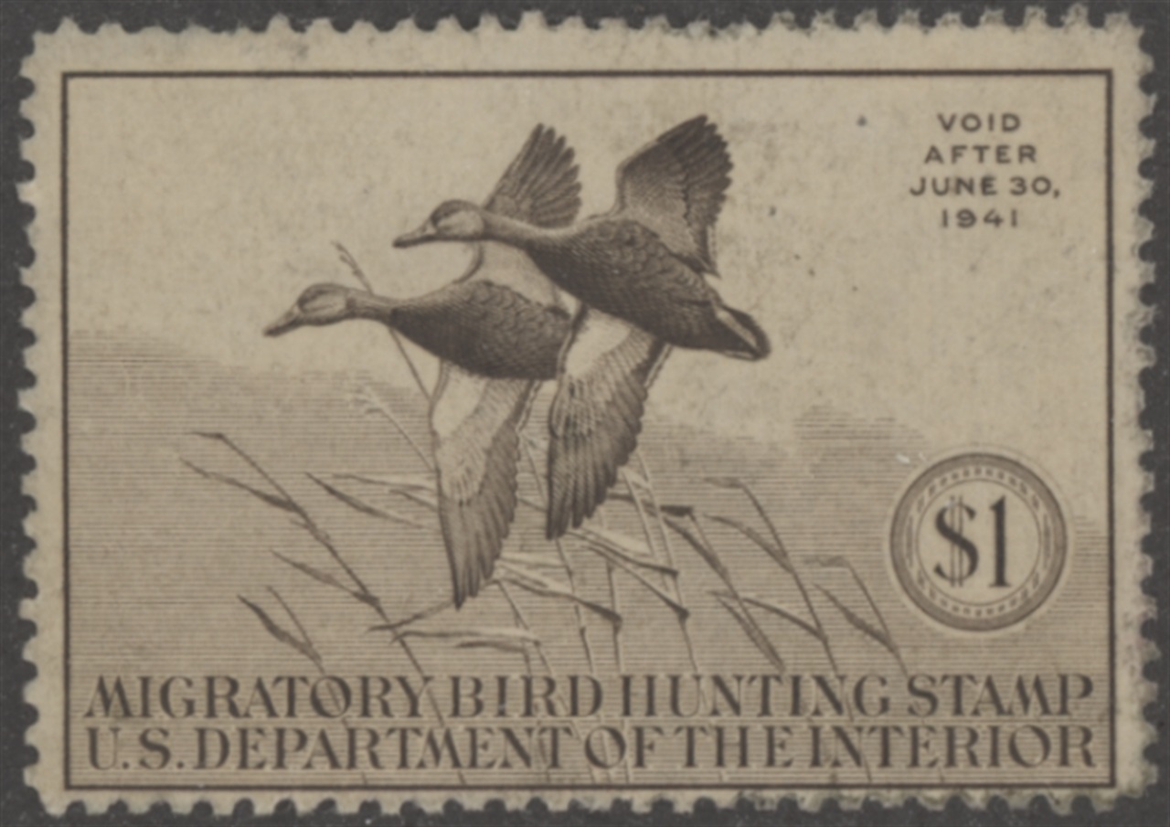 RW7 1940 Federal Duck Stamp. Unsigned, No Gum, Dirty. Black Ducks by Francis L. Jaques.