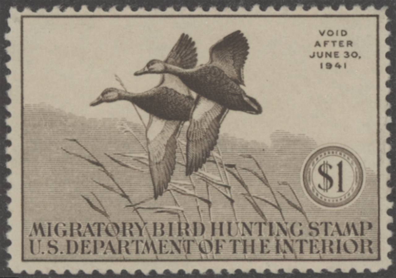 RW7 1940 Federal Duck Stamp. Mint Never Hinged, Gum Slightly Disturbed. Fine - Very Fine Centering. Black Ducks by Francis L. Jaques.