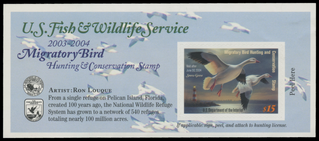 RW70A 2003 Federal Duck Stamp. Mint Never Hinged. Fine - Very Fine. Snow Geese by Ronald J. Louque.