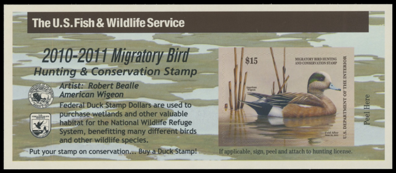 RW77A 2010 Federal Duck Stamp. Mint Never Hinged. Fine - Very Fine. American Wigeon by Robert Bealle.