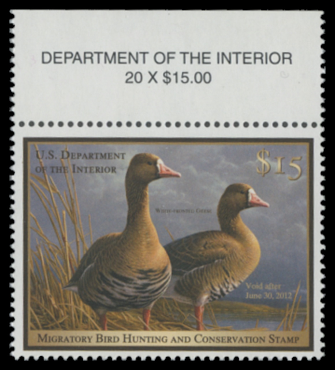 RW78 2011 Federal Duck Stamp. Mint Never Hinged. Fine - Very Fine. White-front Geese by Jim Hautman.