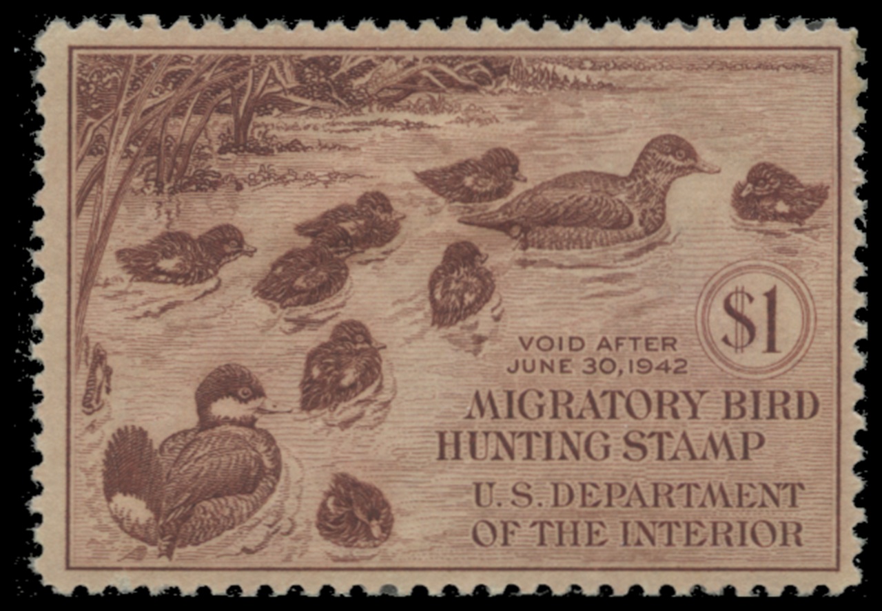 RW8 1941 Federal Duck Stamp. Mint Lightly Hinged. Fine - Very Fine. Family of Ruddy Ducks by E. R. Kalmbach.