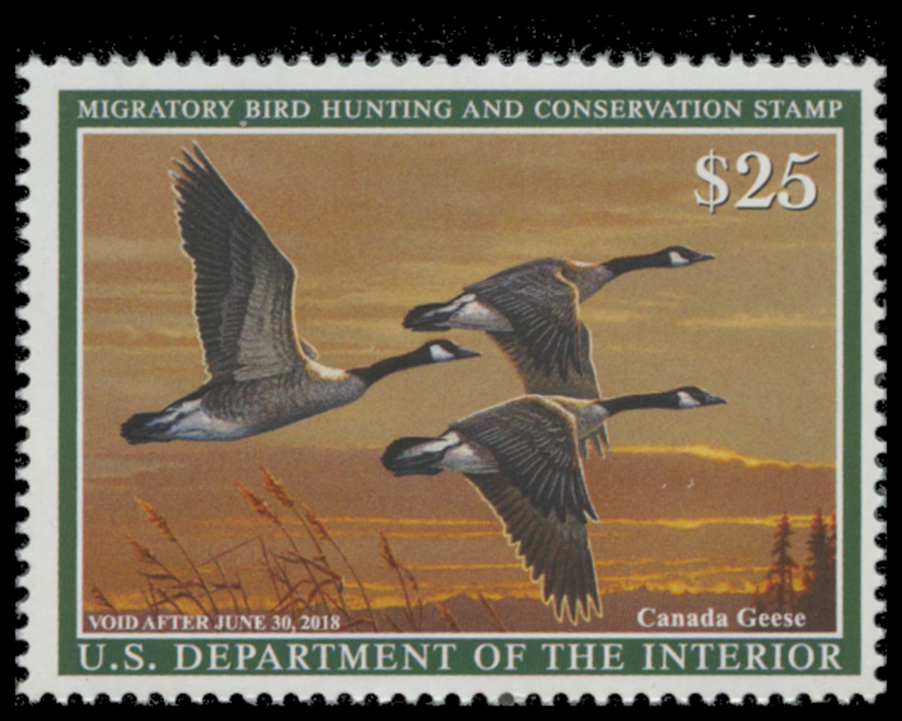 RW84 2017 Federal Duck Stamp. Mint Never Hinged. Very Fine. Canada Geese by Jim Hautman.
