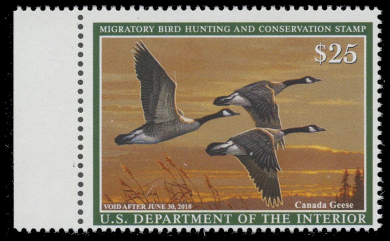 RW84 2017 Federal Duck Stamp. Mint Never Hinged. Fine - Very Fine. Canada Geese by Jim Hautman.