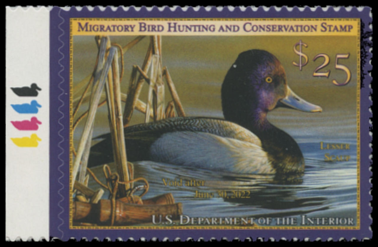 RW88 2021 Federal Duck Stamp. Mint Never Hinged. Fine - Very Fine. Lesser Scaup by Richard Clifton.