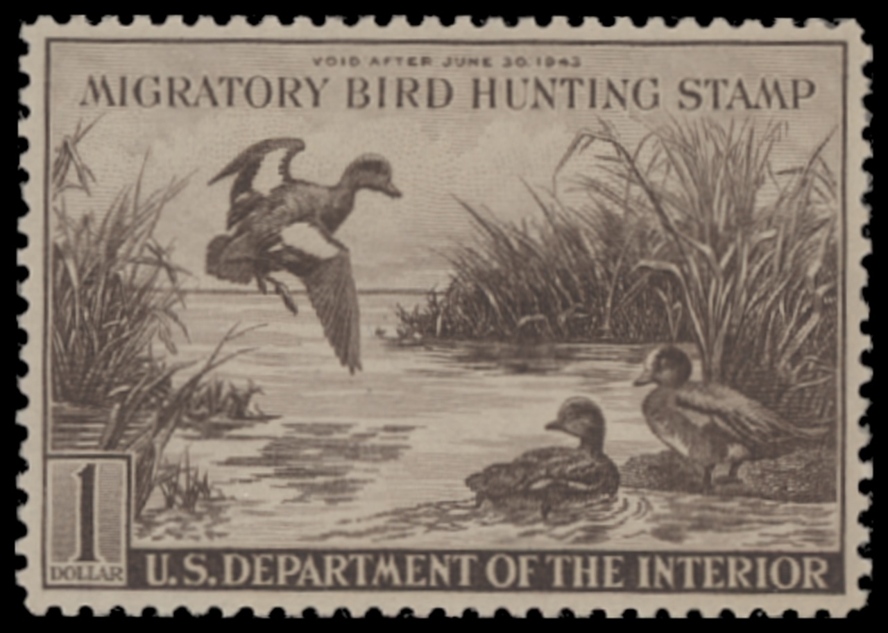 RW9 1942 Federal Duck Stamp. Mint Never Hinged. Fine - Very Fine. Widgeon by A. Lassell Ripley.