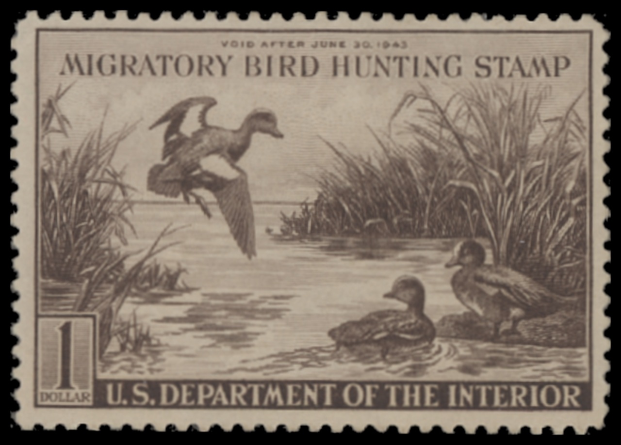 RW9 1942 Federal Duck Stamp. Mint Never Hinged. Fine - Very Fine. Widgeon by A. Lassell Ripley.
